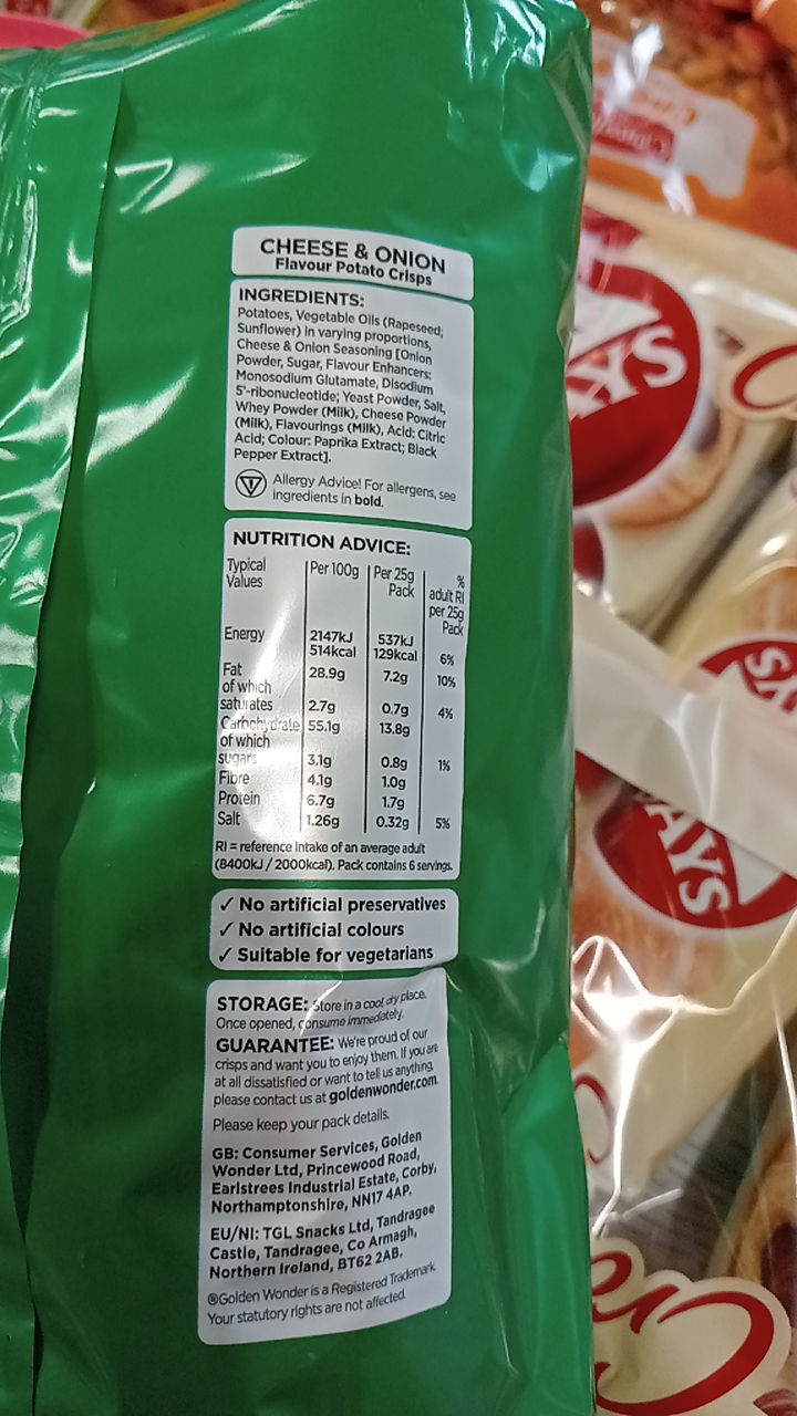 In addition to its Halal status, Cheese & Onion Flavour Potato Crisps meet various health and dietary standards. They are labeled as containing: