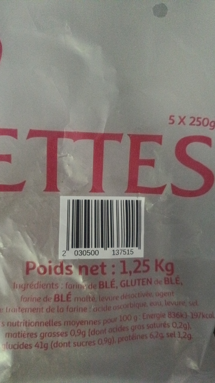 📄 Certificates: 5 X 250G, Net Weight: 1.25 Kg, Average Nutritional Values Per 100G: Energy 836K 197Kcal, Fat 0.9G (Including Saturated Fatty Acids 0.2G), Carbohydrates 41G (Including Sugars 0.9G), Proteins 6.2G, Salt 1.2G