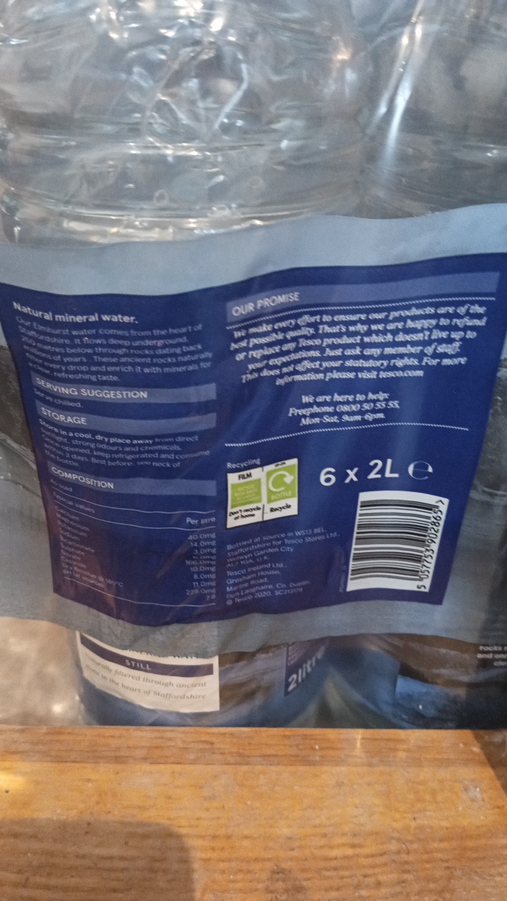 Natural mineral water primarily contains a variety of minerals and compounds. For our analysis, we will review its ingredients: