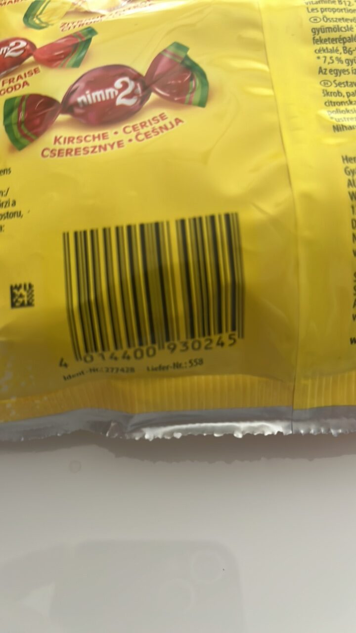 All named ingredients in ‘nimm 2’ candy are common fruits, including strawberry and cherry in multiple languages. According to Islamic principles, fruits are Halal unless proven otherwise.